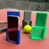 Corner-mounted phone holder for padel, pickleball, and tennis.
